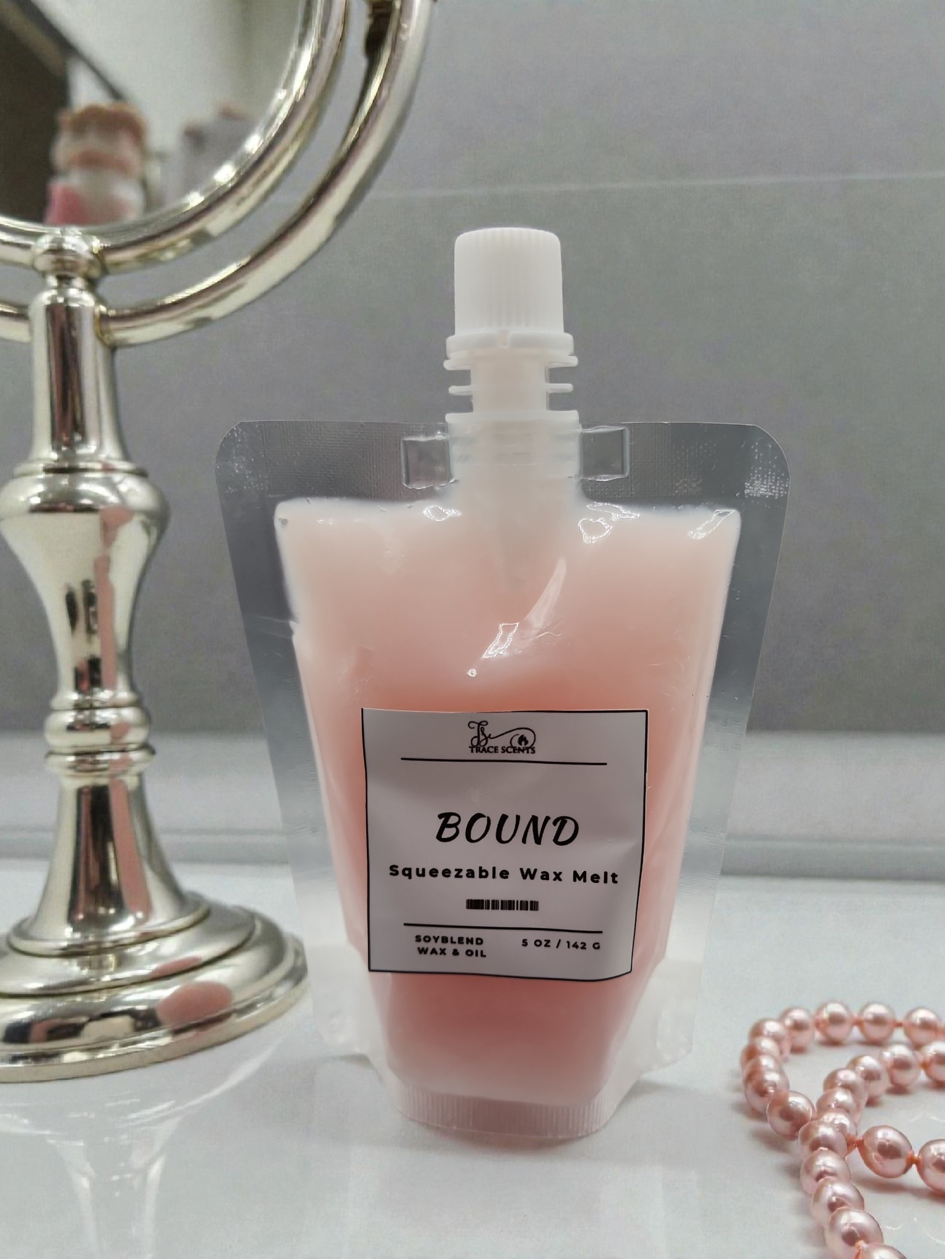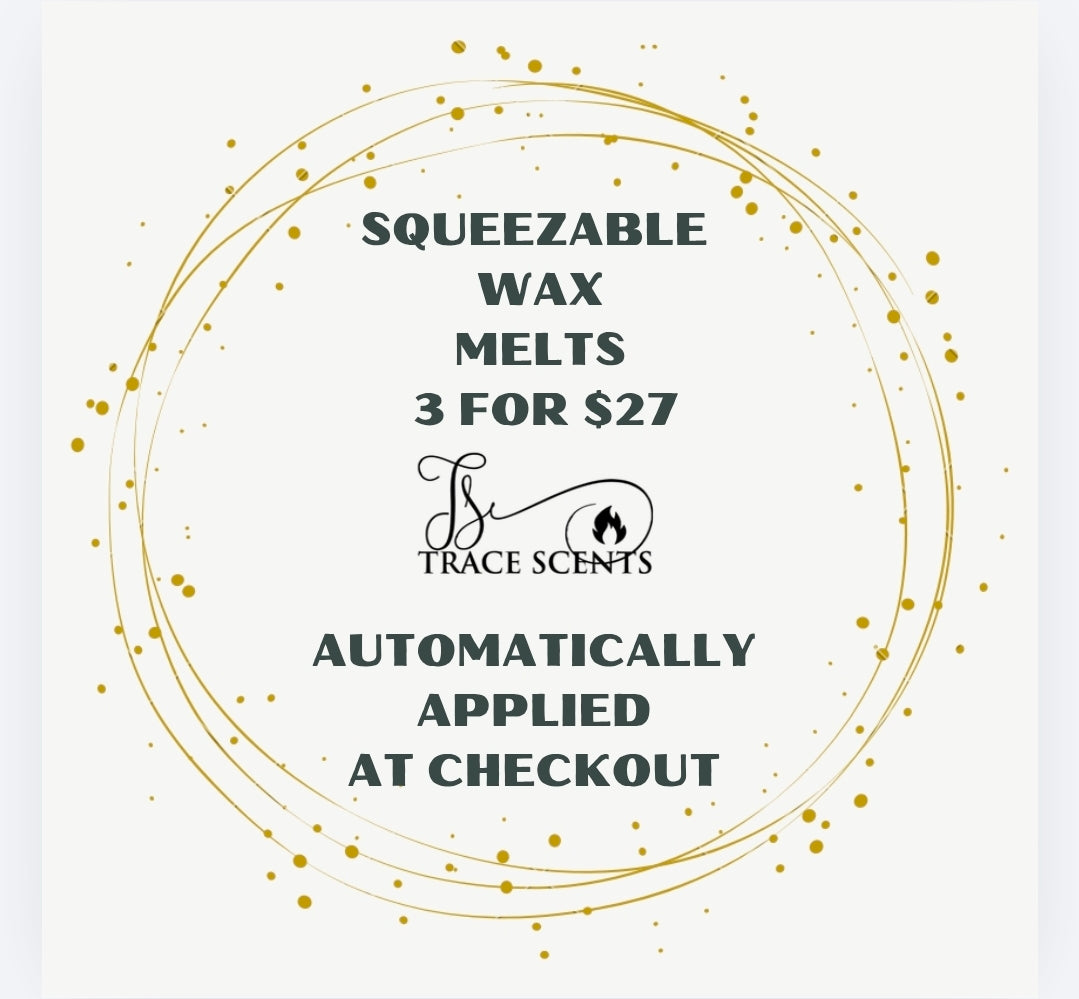 Trace Scents Squeeze Wax is a highly scented, pourable wax blend made with pure soy oil and soy blend wax. Unlike traditional cube melts, Squeeze Wax allows you to fully control your fragrance experience by layering scents and adjusting strength to fit your mood, space, or moment. From home to office to self-care nights, the possibilities are endless.